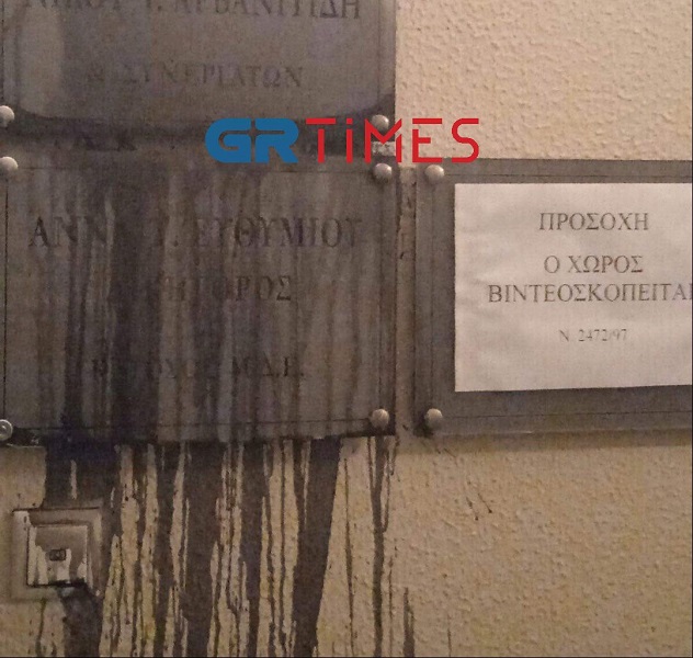 Μπογιές στην είσοδο του δικηγορικού γραφείου της βουλευτή Α’ Θεσσαλονίκης της Νέας Δημοκρατίας Άννας Ευθυμίου, πέταξαν άγνωστοι αργά το απόγευμα της Παρασκευής.