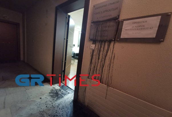 Τα άτομα εισήλθαν στο κτίριο που βρίσκεται στο κέντρο της πόλης και μόλις έφτασαν έξω από το γραφείο πέταξαν μαύρη μπογιά, τόσο στην πόρτα, όσο και στην πινακίδα που αναγράφει το όνομα και τη δικηγορική ιδιότητα της κα. Ευθυμίου.