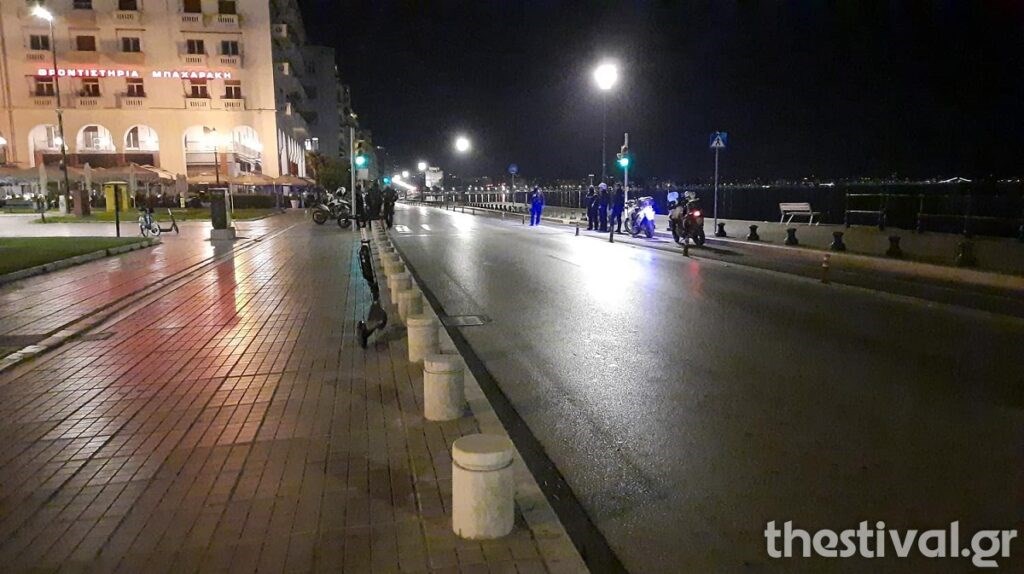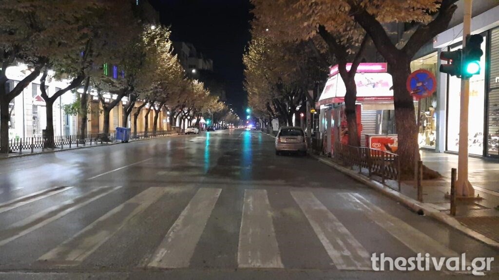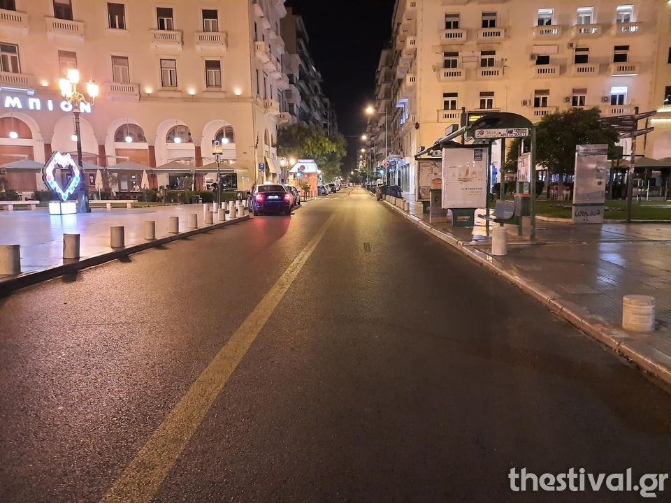 Άδειες πλατείες και άδειοι δρόμοι. Αυτή ήταν η εικόνα στη Θεσσαλονίκη, λίγα λεπτά μετά τις 00:30, ώρα κατά την οποία τέθηκε σε ισχύ το μέτρο της απαγόρευσης της κυκλοφορίας κατά τις βραδινές ώρες και στη «Νύμφη του Θερμαϊκού», η οποία από την Παρασκευή βρίσκεται σε πορτοκαλί επίπεδο συναγερμού αναφορικά με την επιδημιολογική της εικόνα.