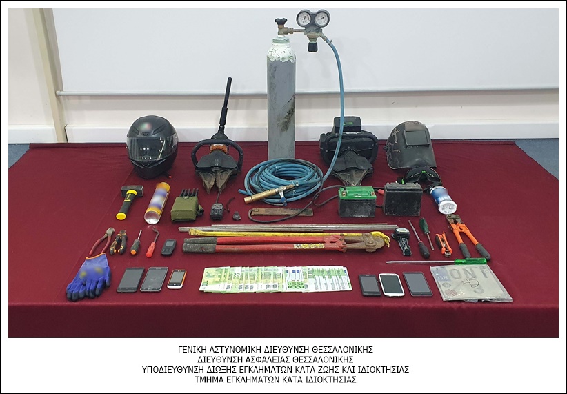 Αναλυτικά, ειδική ομάδα αστυνομικών του Τμήματος Εγκλημάτων κατά Ιδιοκτησίας της Διεύθυνσης Ασφάλειας Θεσσαλονίκης έπειτα από επισταμένη έρευνα και συντονισμένες ενέργειες πέτυχε την εξάρθρωση εγκληματικής οργάνωσης, που ενέχεται σε περιπτώσεις διαρρήξεων ΑΤΜ και οικιών στην ευρύτερη περιοχή της Θεσσαλονίκης.