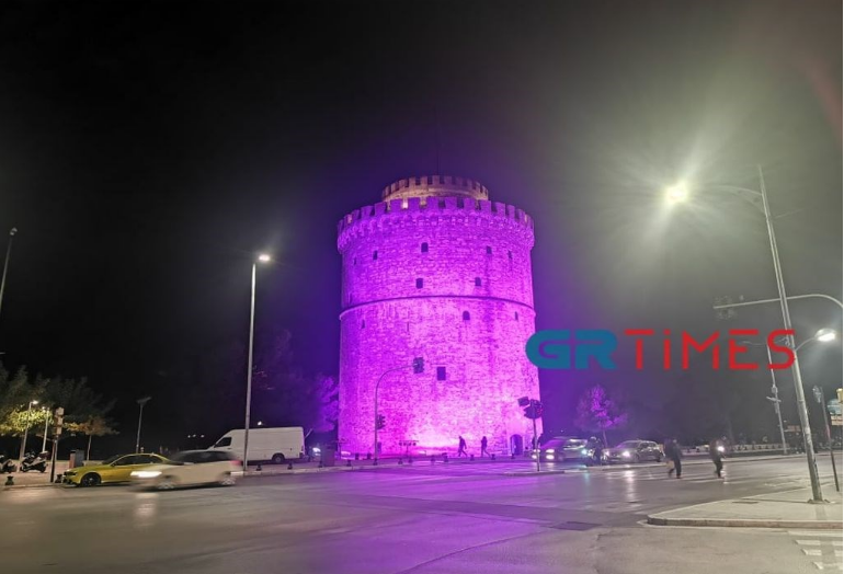 Με μωβ χρώμα φωταγωγήθηκε ο Λευκός Πύργος, εν όψει της Παγκόσμιας Ημέρας Προωρότητας.