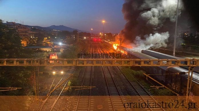 Αυτήν την ώρα καίγονται 4 εγκαταλελειμμένα βαγόνια, χωρίς να υπάρχει κίνδυνος εξάπλωσης της πυρκαγιάς.