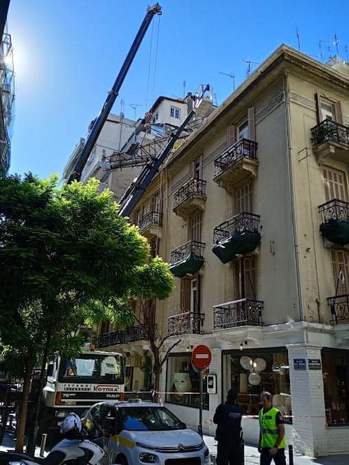 Από θαύμα δεν υπήρξαν τραυματίες λίγο μετά τα μεσάνυχτα της Δευτέρας (30/09) στο κέντρο της Θεσσαλονίκης, όταν ένα φουγάρο από οικοδομή αποκολλήθηκε λόγω των ισχυρών ανέμων, και έπεσε πάνω σε τραπεζοκαθίσματα.
