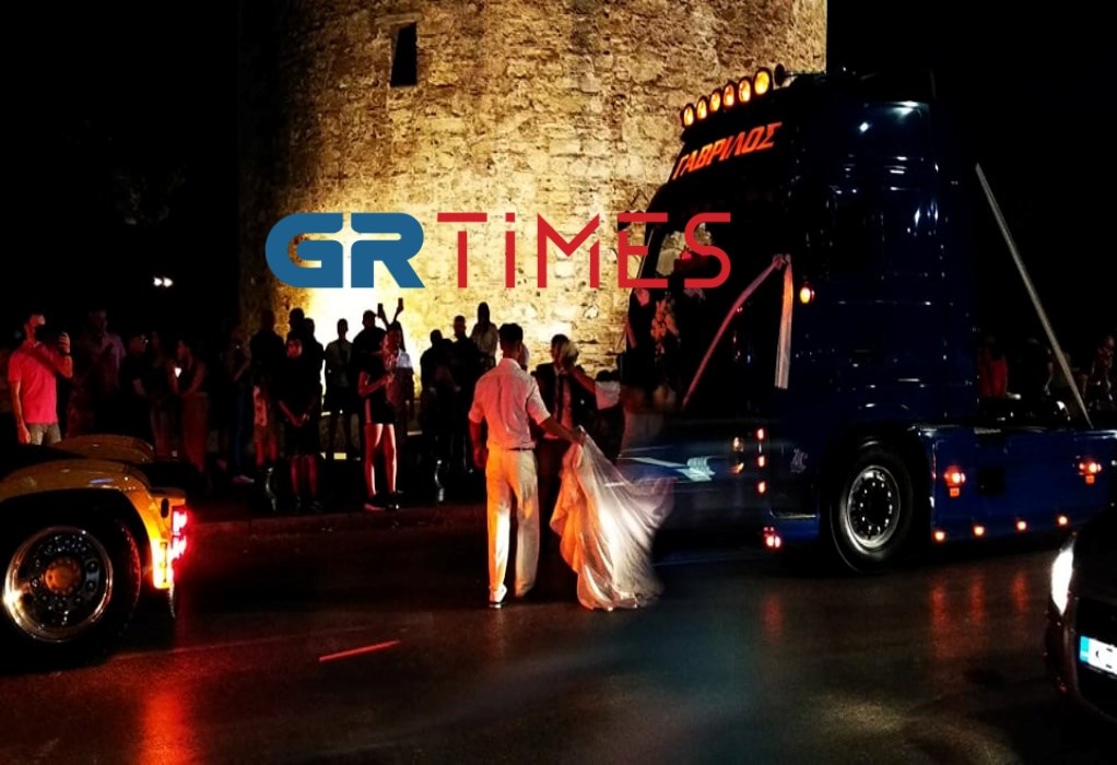 Πορεία με νταλίκες πραγματοποιήθηκε το βράδυ του Σαββάτου, στην παραλιακή Λεωφόρο Νίκης, στο πλαίσιο του γάμου δύο νέων ανθρώπων. Το απόγευμα του Σαββάτου, ένας 30χρονος ιδιοκτήτης νταλίκας παντρεύτηκε την αγαπημένη του, στο Αγίασμα Ευόσμου.
