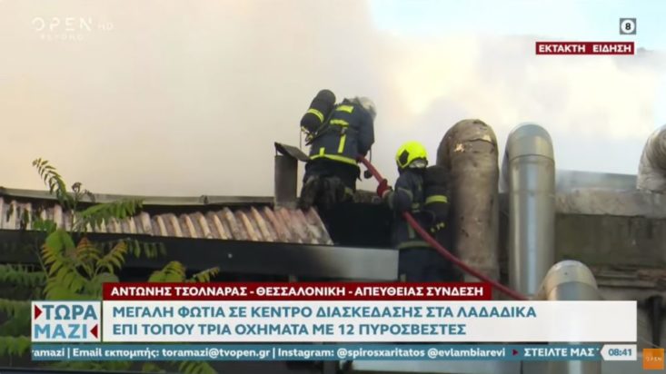 Φωτιά ξέσπασε σε νυχτερινό μαγαζί στην Θεσσαλονίκη, με τις φλόγες να είναι ορατές σε μεγάλη απόσταση.