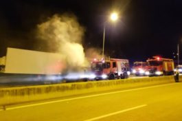 Φωτιά άρπαξε μία νταλίκα που βρισκόταν εν κινήσει στην Εγνατία Οδό τα ξημερώματα της Τετάρτης (02/08) στη Θεσσαλονίκη, χωρίς ωστόσο να σημειωθεί κάποιος τραυματισμός.