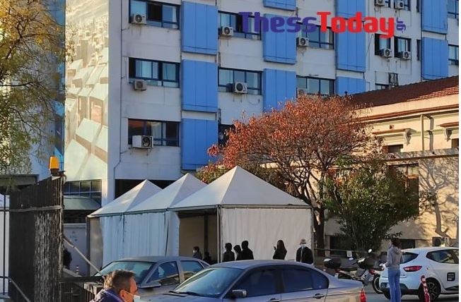 Μεγάλες ουρές πολιτών έχουν δημιουργηθεί από νωρίς στον προαύλιο χώρο του Ιπποκράτειου Νοσοκομείου στη Θεσσαλονίκη – όπου εφημερεύει από τις 08.00 το πρωί – για τη διενέργεια rapid test. Τα τεστ γίνονται σε ειδικές σκηνές που έχουν δημιουργηθεί με σκοπό να μην εισέρχονται οι πολίτες στους εσωτερικούς χώρους του νοσοκομείου.