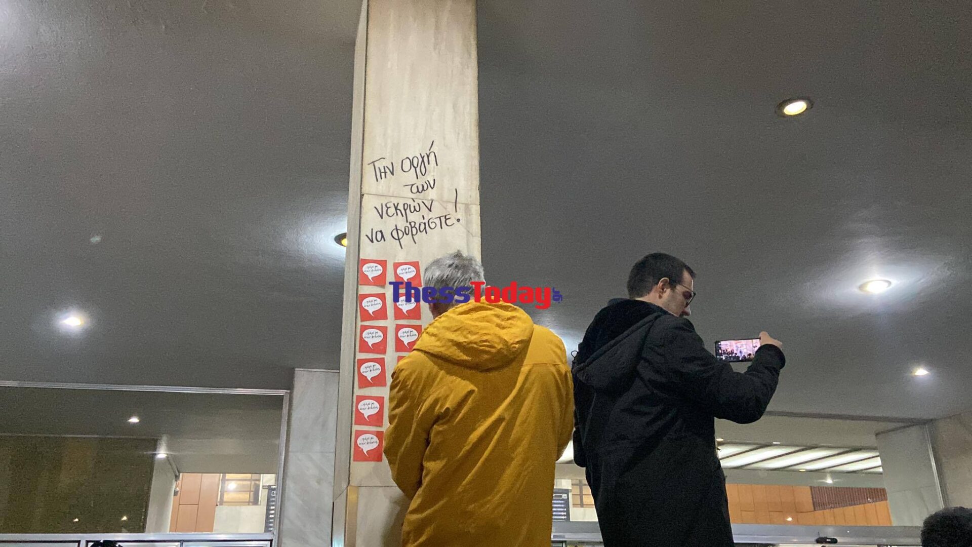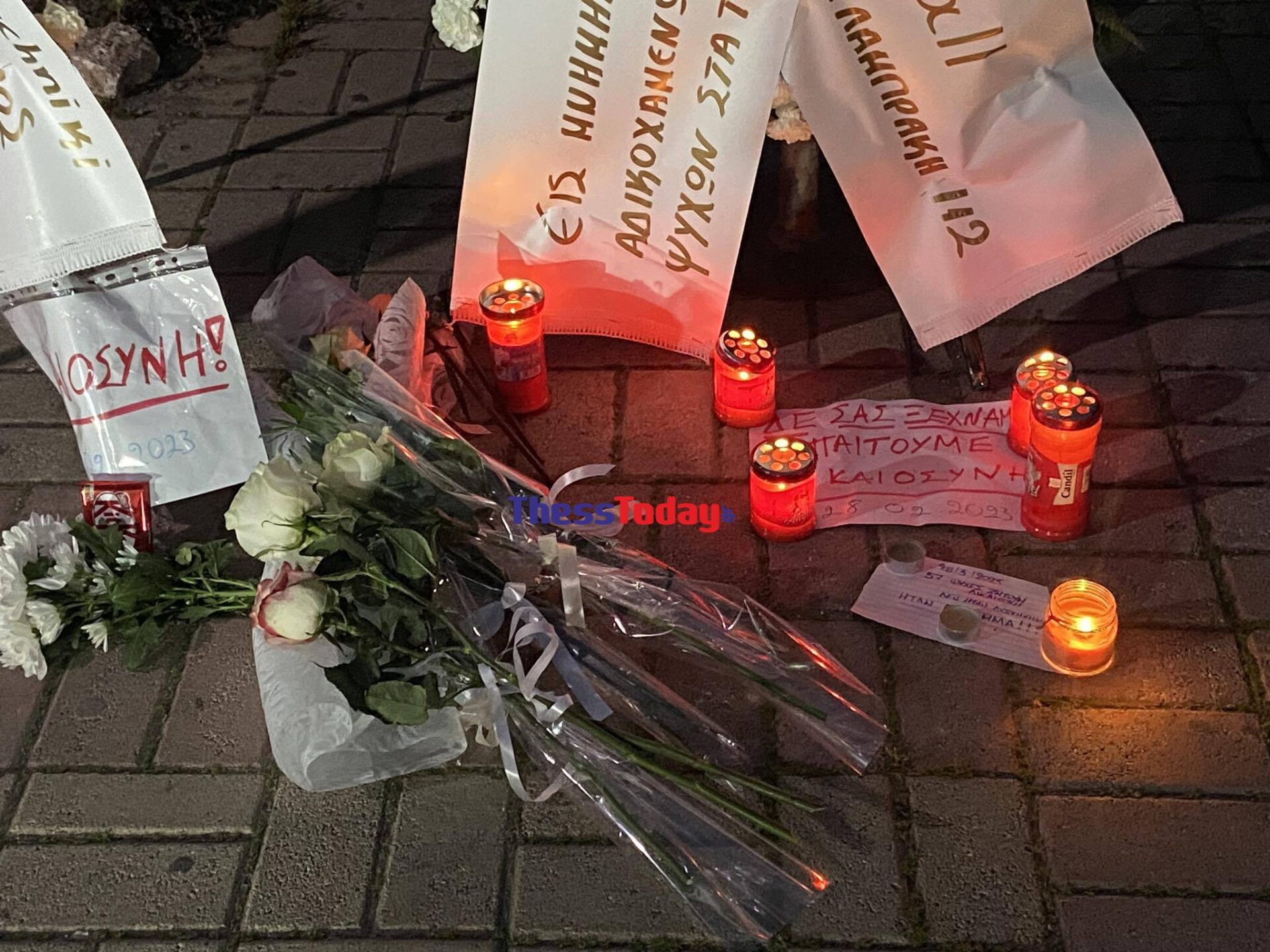 Το κλίμα είναι από νωρίς στο Σιδηροδρομικό Σταθμό της Θεσσαλονίκης είναι φορτισμένο καθώς μικροί και μεγάλοι ήρθαν κρατώντας από ένα λουλούδι στο χέρι για να αποτίσουν φόρο τιμής στους 57 νεκρούς.