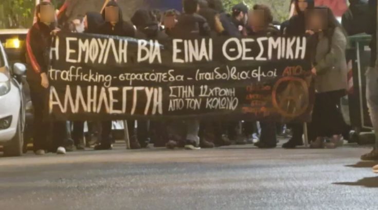 Πορεία διαμαρτυρίας πραγματοποίησαν στο κέντρο της Θεσσαλονίκης άτομα του ευρύτερου αντιεξουσιαστικού χώρου με αφορμή την εισαγγελική πρόταση στη δίκη για την σεξουαλική κακοποίηση της 12χρονης στον Κολωνό.