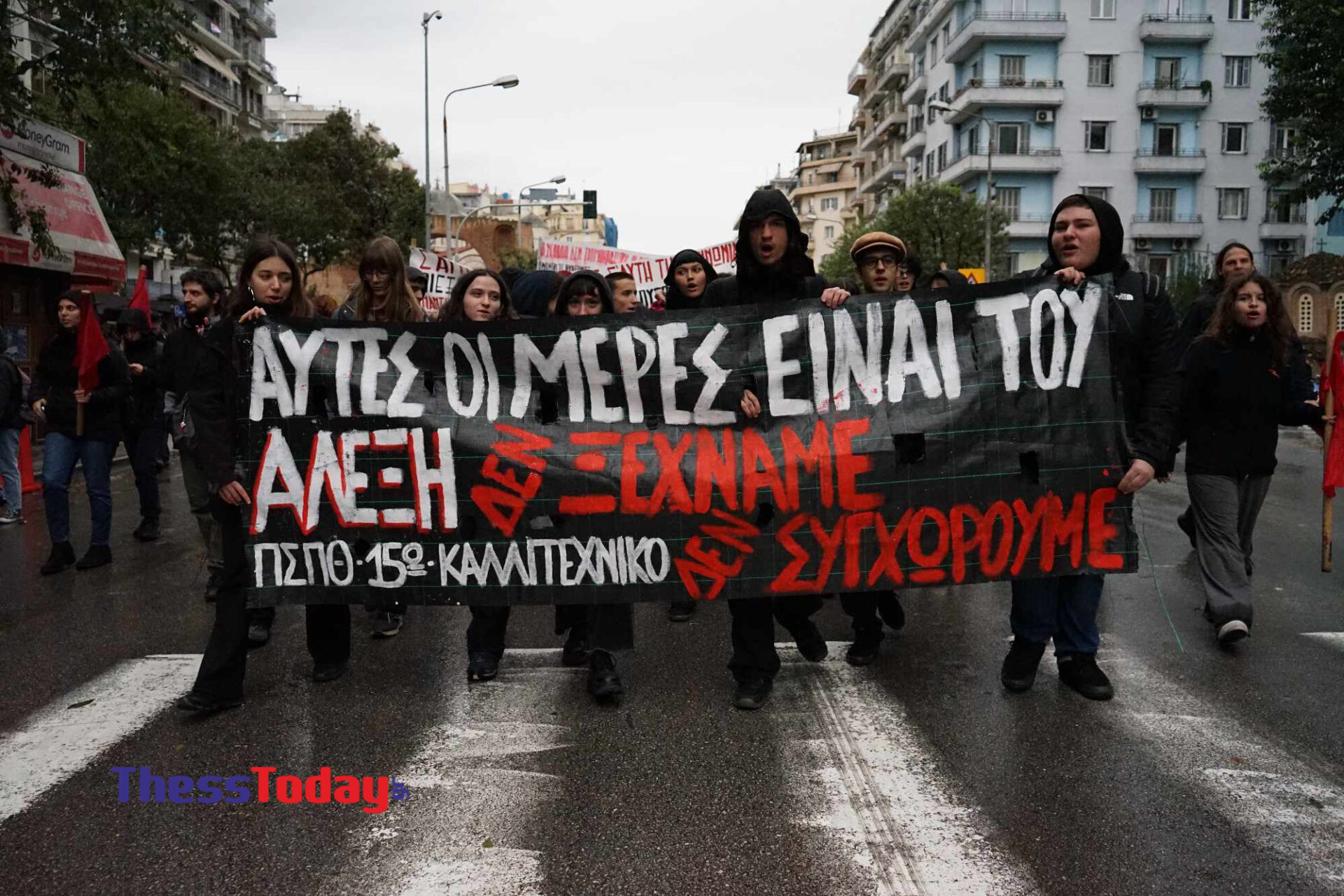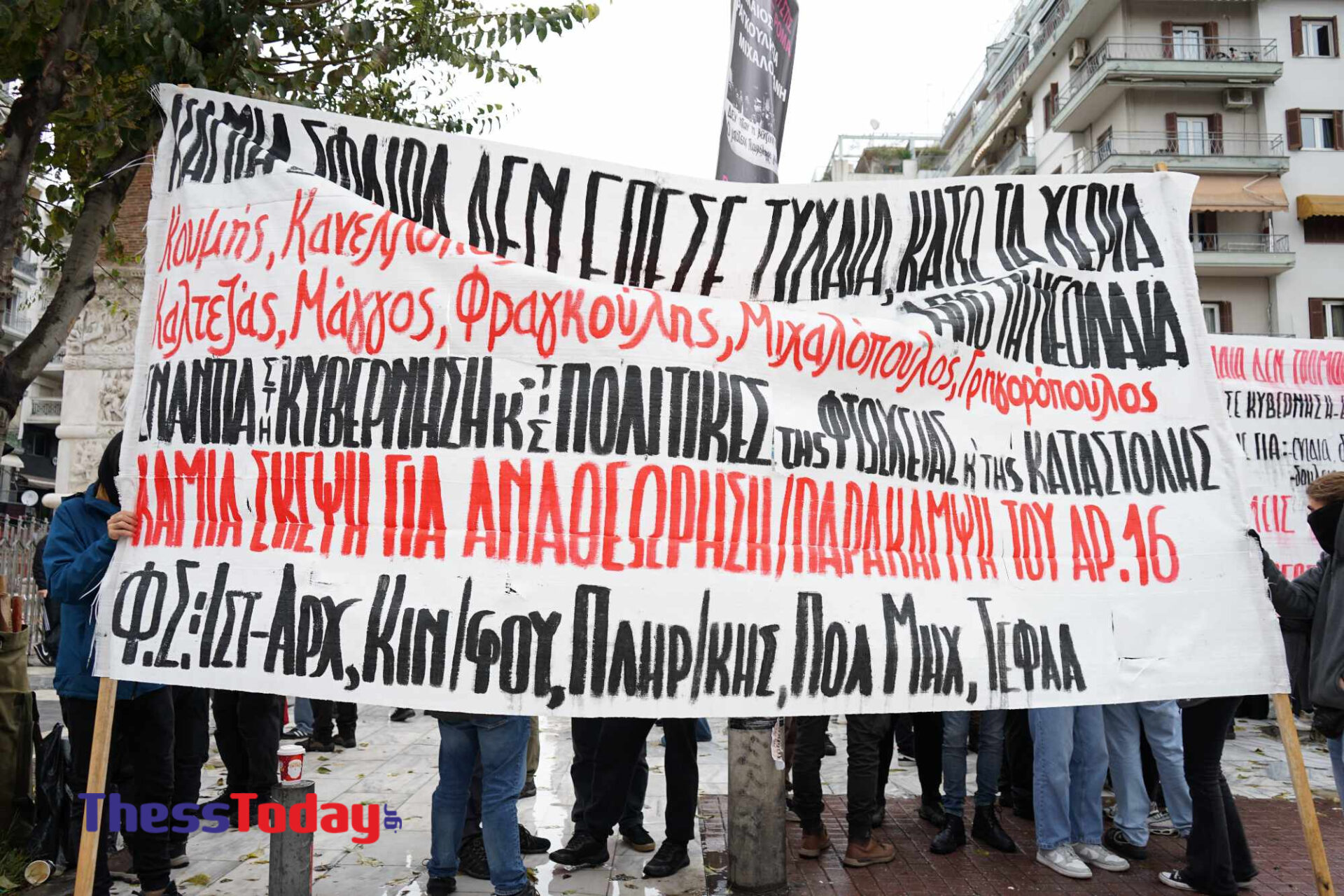 Σύμφωνα με το thesstoday.gr, στην κινητοποίηση συμμετέχουν μαθητές, φοιτητές καθώς και άτομα που ανήκουν στον ευρύτερο αντιεξουσιαστικό χώρο. Οι διαδηλωτές φωνάζουν συνθήματα κατά της Αστυνομίας, της κυβέρνησης και του κράτους.
