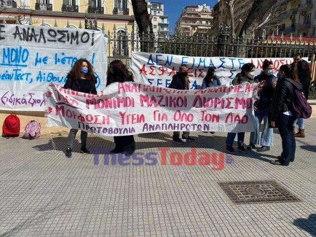 Αρχικά, όπως αναφέρει το thesstoday, οι διαδηλωτές συγκεντρώθηκαν στο άγαλμα Βενιζέλου, για το προγραμματισμένο πανεκπαιδευτικό συλλαλητήριο, στο πλαίσιο των κινητοποιήσεων για την κατάργηση του νόμου Κεραμέως, και το άνοιγμα των σχολείων αλλά και των σχολών.