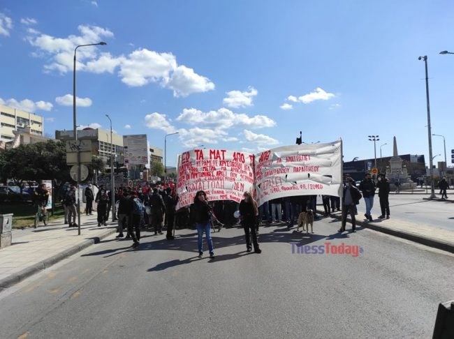 Η μαζική πορεία φοιτητών, μαθητών, εκπαιδευτικών και υγειονομικών, που πραγματοποιήθηκε το μεσημέρι της Πέμπτης σε κεντρικούς δρόμους της Θεσσαλονίκης κατέληξε στο Αριστοτέλειο Πανεπιστήμιο Θεσσαλονίκης. Οι φοιτητές αφού έφτασαν στον εξωτερικό χώρο του πανεπιστημίου, σύμφωνα με το thesstoday.gr, ξεκίνησαν να φωνάζουν συνθήματα για τις 15 Απριλίου, όποτε και θα εφαρμοστεί το νομοσχέδιο Κεραμέως για την πανεπιστημιακή αστυνομία.