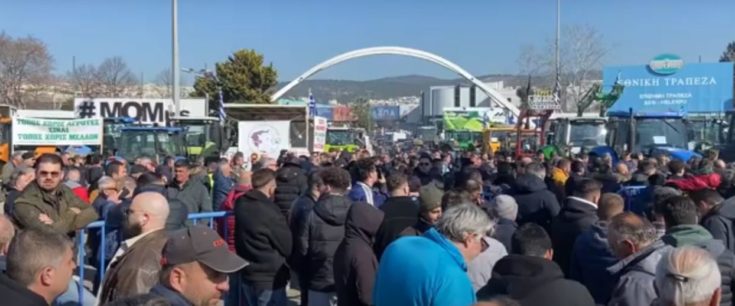 «Ο αγώνας τώρα ξεκινάει» επισημαίνουν οι διαμαρτυρόμενοι που έχουν παρατάξει τα τρακτέρ τους στην νότια πύλη της ΔΕΘ.