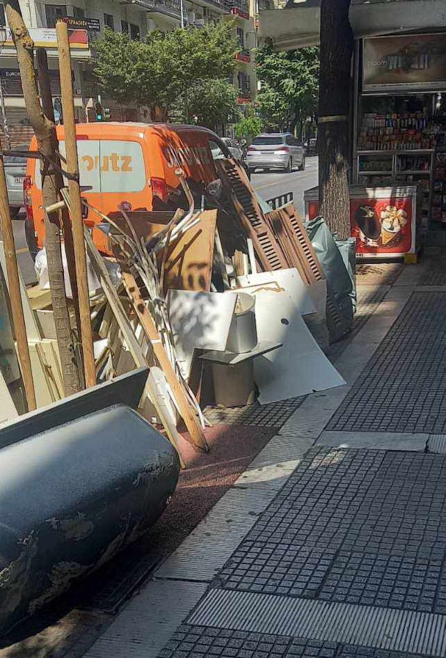 Αντιμέτωπος με πρόστιμο βρέθηκε πολίτης στη Θεσσαλονίκη, ο οποίος στο πλαίσιο εργασιών ανακαίνισης που πραγματοποιούσε άφησε μπανιέρα, παντζούρια και μπάζα σε πεζοδρόμιο στην Τσιμισκή, στο κέντρο της Θεσσαλονίκης.