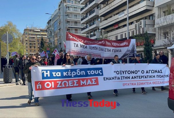 Σε εξέλιξη βρίσκονται πορείες στο κέντρο της Θεσσαλονίκης, στο πλαίσιο της σημερινής (09/04) απεργίας που εξήγγειλαν ΓΣΕΕ και ΑΔΕΔΥ, με κύρια αιτήματα συλλογικές συμβάσεις, πραγματικές αυξήσεις, 13ο και 14ο μισθό στον δημόσιο τομέα και αντιμετώπιση της ακρίβειας.