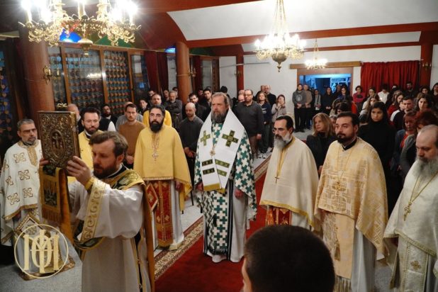 Οι Ιερές Ακολουθίες τελέστηκαν στον ιερό ναό των αγίων Τριών Ιεραρχών της Α΄ Φοιτητικής Εστίας, στον 8ο όροφο, στις οποίες προεξήρχε ο Μητροπολίτης Θεσσαλονίκης κ. Φιλόθεος.