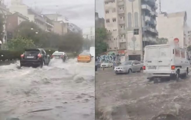 Την ίδια ώρα, από την ορμή του νερού ένα καπάκι φρεατίου έφυγε από τη θέση του στο ύψος των Δωδεκαώροφων, όπως φαίνεται στο βίντεο του Status FM: