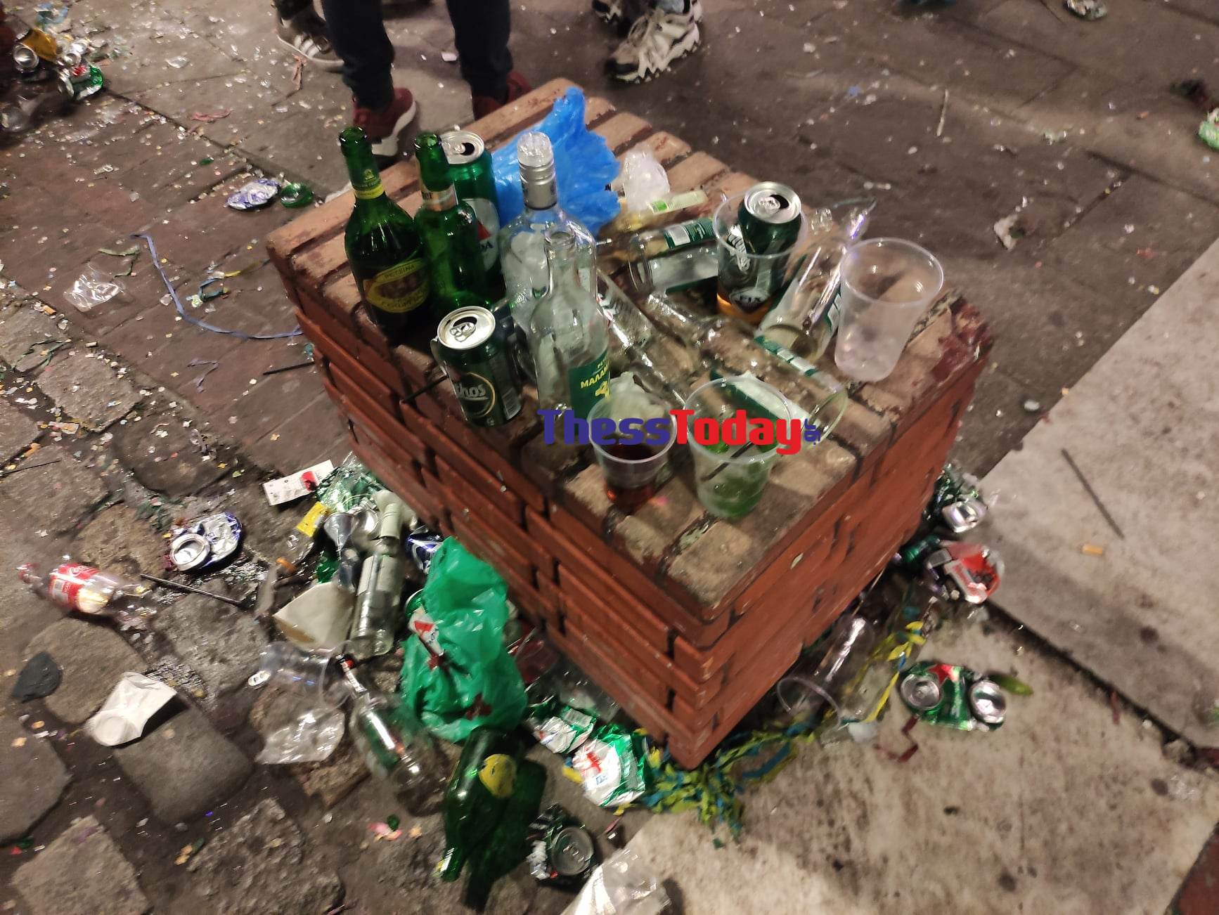 Σε απέραντο σκουπιδότοπο μετατράπηκαν τα Λαδάδικα στη Θεσσαλονίκη μετά το γλέντι της Τσικνοπέμπτης.