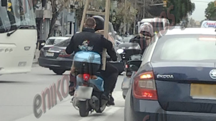 Το πιο ανησυχητικό ήταν ότι μετακινούνταν έχοντας σφηνώσει ανάμεσά τους μία σκάλα, ενώ, σύμφωνα με την περιγραφή του αναγνώστη, πραγματοποιούσαν και επικίνδυνους ελιγμούς ανάμεσα στα οχήματα.