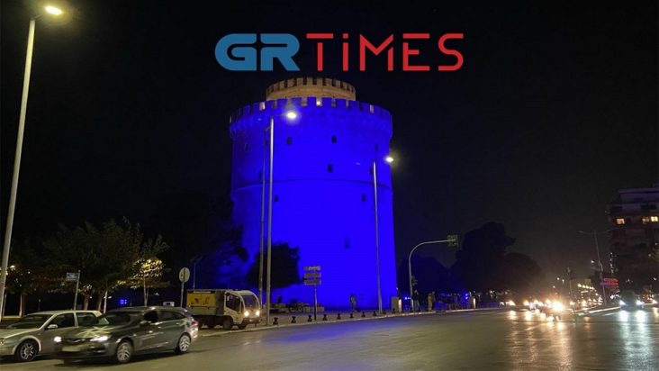 Με μπλε χρώματα φωταγωγήθηκε σήμερα, Δευτέρα (14/11) το μνημείο του Λευκού Πύργου στο κέντρο της Θεσσαλονίκης, για την Παγκόσμια Ημέρα Διαβήτη.