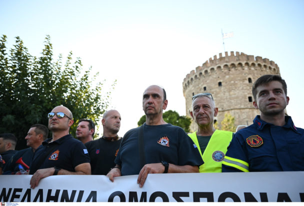 Αστυνομικοί, πυροσβέστες, λιμενικοί και στρατιωτικοί, άνθρωποι που όλο τον χρόνο βρίσκονται στο πεδίο, πλημμύρισαν την πλατεία του Λευκού Πύργου, κρατώντας στα χέρια τους πανό και πλακάτ με τα αιτήματά τους.