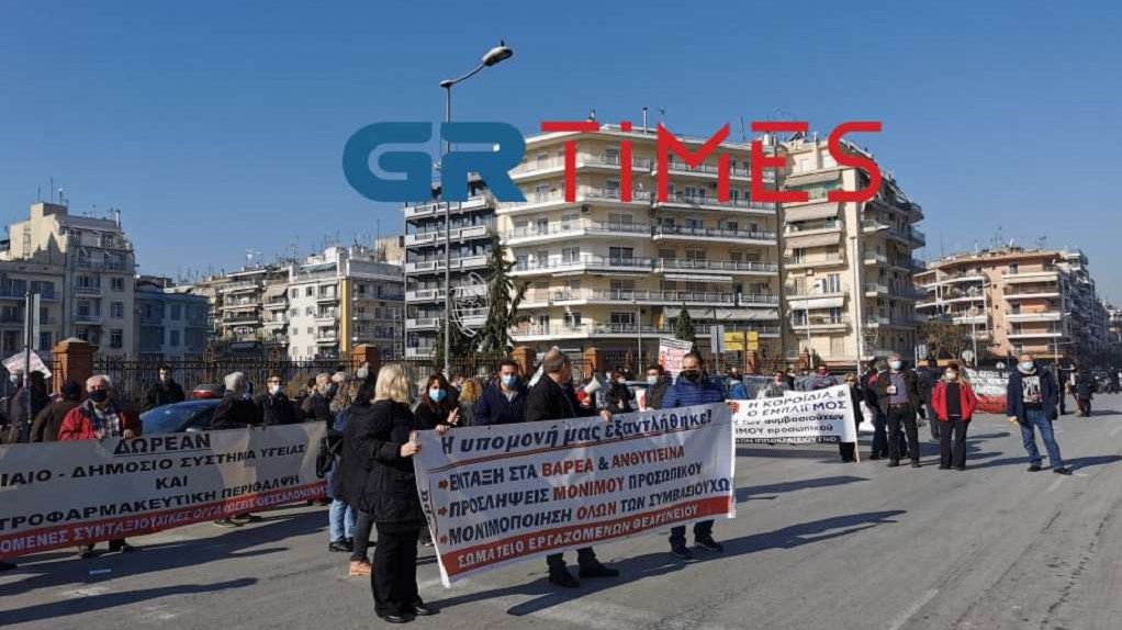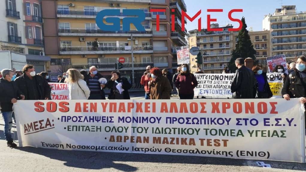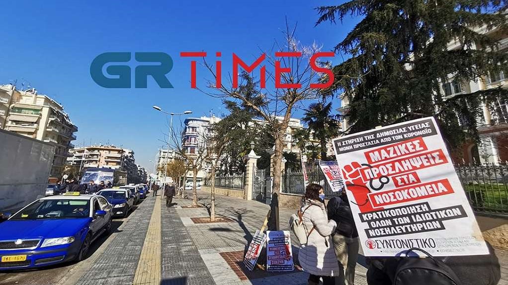 Συγκέντρωση διαμαρτυρίας μπροστά στο υπουργείο Μακεδονίας – Θράκης στη Θεσσαλονίκη πραγματοποιούν αυτή την ώρα υγειονομικοί, στα πλαίσια της εικοσιτετράωρη απεργίας που έχει εξαγγείλει για σήμερα η Ομοσπονδία Ενώσεων Νοσοκομειακών Γιατρών Ελλάδας (ΟΕΝΓΕ), ενώ η ΠΟΕΔΗΝ πραγματοποιεί πανελλαδική στάση εργασίας.