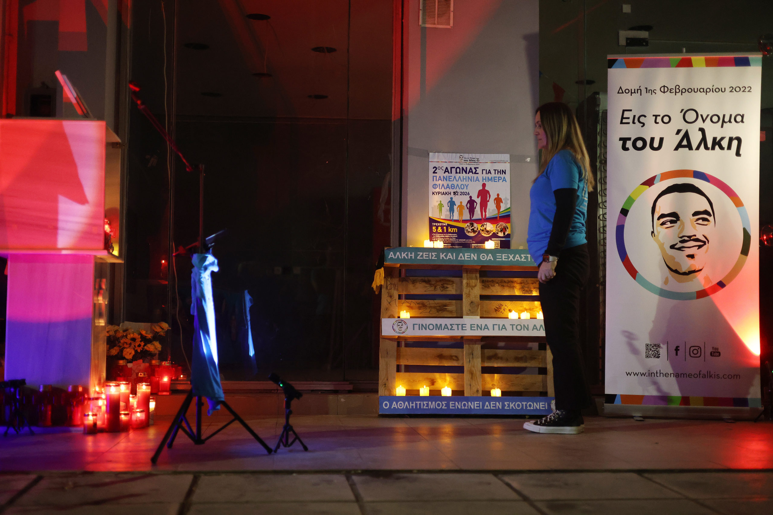 Απόψε το βράδυ, με πρωτοβουλία της Δομής «Εις το όνομα του Άλκη», δεκάδες πολίτες τίμησαν τη μνήμη του αδικοχαμένου Άλκη αφήνοντας κεράκια και λουλούδια στο σημείο όπου ξεψύχησε.