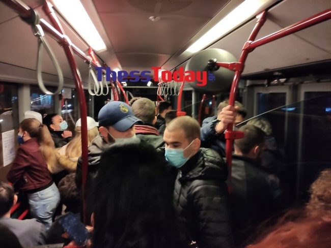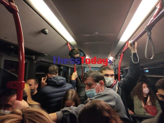 Ειδικότερα, στη γραμμή 21 που ξεκινάει από την πλατεία Αριστοτέλους και καταλήγει στον Εύοσμο, υπήρξε έντονος συνωστισμός, καθώς όλοι, μετά την απογευματινή τους βόλτα, δεδομένου ότι επιτρέπονται οι μετακινήσεις από δήμο σε δήμο τα σαββατοκύριακα, γυρνούσαν στο σπίτι για να γλιτώσουν το πρόστιμο. Άγνωστο παραμένει βέβαια αν γλίτωσαν και τον κορονοϊό…
