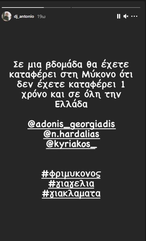 Στο αμέσως προηγούμενο story σχολίαζε τα περιοριστικά μέτρα στη Μύκονο.