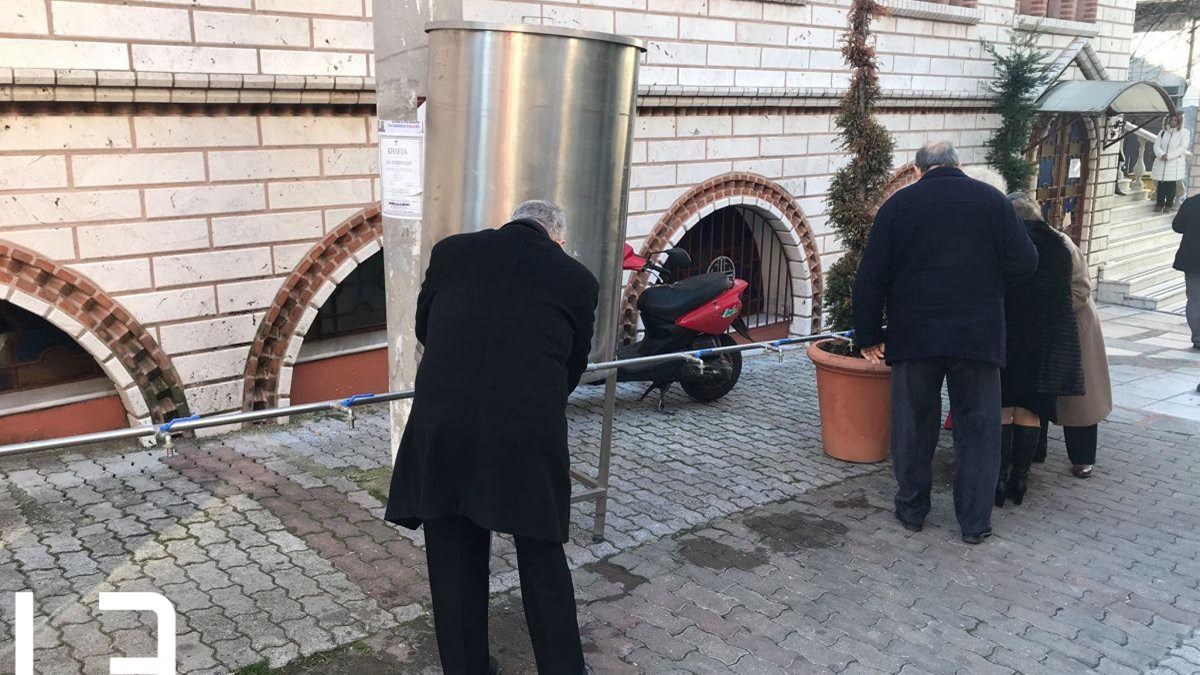 Σε αρκετές εκκλησίες, οι ουρές που δημιουργούνται είναι μεγάλες αναμένοντας να λάβουν από τον ιερέα τον αγιασμό.