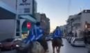 Μετά την μαθητική παρέλαση, το απόγευμα δυο άντρες βγήκαν με τα άλογα τους στη οδό Μεγάλου Αλεξάνδρου στον Εύοσμο. Με σημαίες στην πλάτη τους, κάλπαζαν στο κεντρικό δρόμο με τους κατοίκους να κοιτούν έκπληκτοι, ενώ κάποιοι από αυτούς τους χαιρετούσαν, σύμφωνα με το makthes.gr.