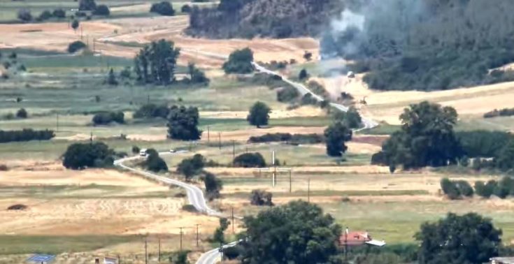 Drone της πυροσβεστικής κατέγραψε την στιγμή που ξέσπασε η φωτιά. Στα πλάνα φαίνεται αρχικά λίγος καπνός να υψώνεται δίπλα από ένα δρόμο της περιοχής. Λόγω των ανέμων που έπνεαν στην περιοχή, η φωτιά πήρε γρήγορα διαστάσεις και επεκτάθηκε σε κοντινή δασική έκταση.