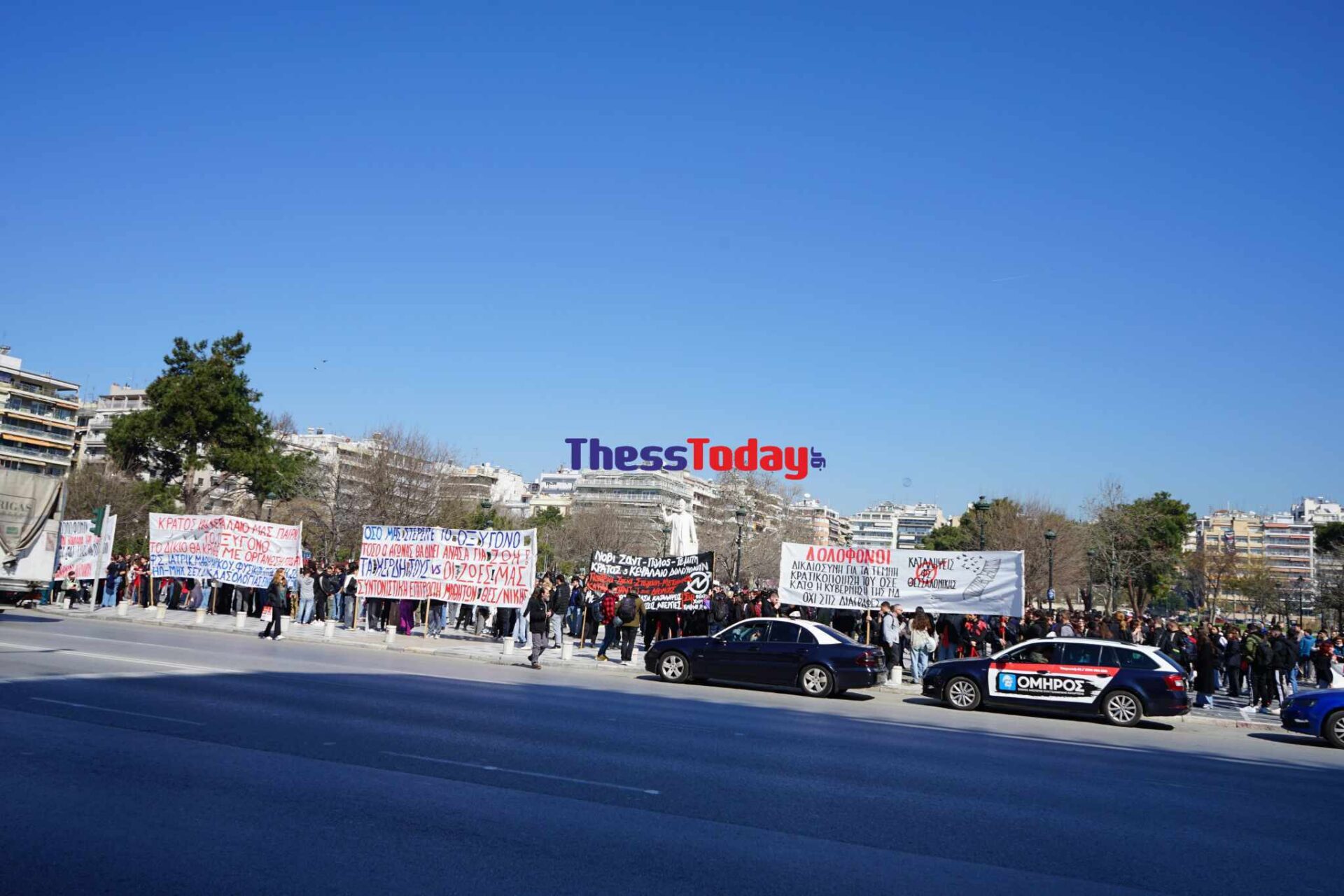 Σύμφωνα με την ιστοσελίδα thesstoday,gr. με κεντρικά συνθήματα γραμμένα στα πανό τους, όπως «Το έγκλημα αυτό δε θα συγκαλυφθεί» και «Όσο μας στερείτε το οξυγόνο, τόσο ο αγώνας θα δίνει ανάσα για ζωή!», οι φοιτητές ξεκίνησαν την πορεία τους στην Εγνατία οδό λίγο μετά τις 12.30.
