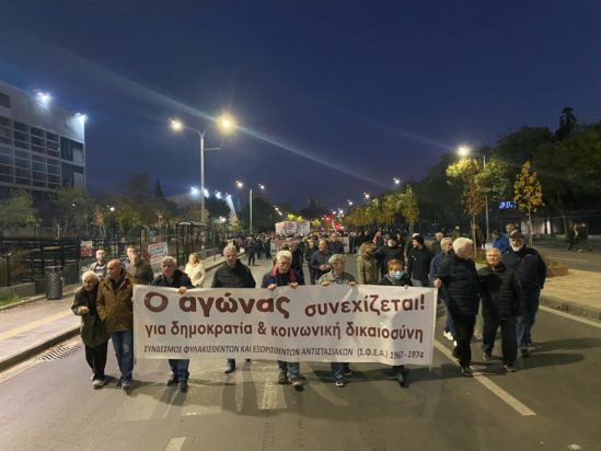 Η πορεία ξεκίνησε έξω από την Πολυτεχνική Σχολή του ΑΠΘ, επί της οδού Εγνατία και στην κεφαλή της βρίσκονται όπως πάντα τα μέλη του Συνδέσμου Φυλακισθέντων & Εξορισθέντων Αντιστασιακών, σύμφωνα με το thestival.gr.