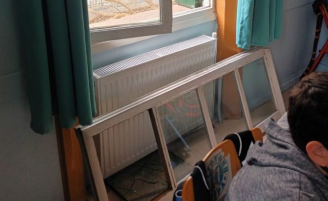 Από θαύμα δεν τραυματίστηκε μαθητής στο 1ο Πειραματικό Δημοτικό Σχολείο, στη Θεσσαλονίκη, όταν την ώρα του μαθήματος παράθυρο έπεσε από τη θέση του. Συγκεκριμένα, στην αίθουσα που έκανε μάθημα το τμήμα της Ε’ τάξης η δασκάλα ζήτησε από μαθητή να ανοίξει το παράθυρο για να αεριστεί η αίθουσα, στο πλαίσιο εφαρμογής των μέτρων για τον κορονοϊό, όμως το κάσωμα με το τζάμι αποσυνδέθηκε από το ξύλινο πλαίσιο του κουφώματος και έπεσε κάτω.