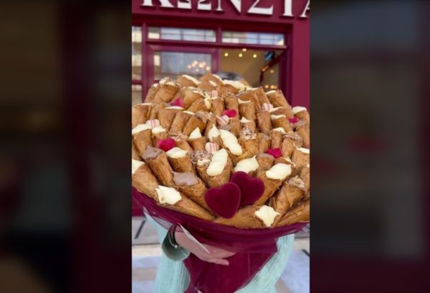 Σε μια ιδιαίτερη κίνηση – πρωτοβουλία περνά γνωστή αλυσίδα ζαχαροπλαστείων στη Θεσσαλονίκη, καθώς ετοίμασε μια ανθοδέσμη που, αντί για λουλούδια, την κοσμούν δεκάδες τρίγωνα Πανοράματος.