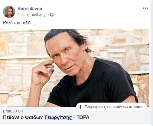 Η Καίτη Φίνου ευχήθηκε “καλό ταξίδι” με ανάρτησή της στο facebook.