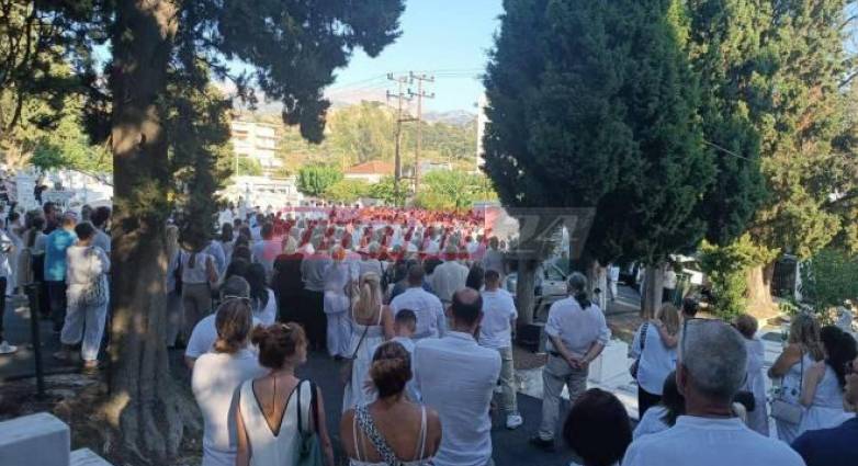Όπως φαίνεται στις φωτογραφίες που δημοσίευσε το tempo24.gr, όσοι έφτασαν στο κοιμητήριο ήταν όλοι τους ντυμένοι στα λευκά, όπως ήταν η επιθυμία της οικογένειας της άτυχης κοπέλας, ενώ την κηδεία τέλεσε ο μητροπολίτης Πατρών Χρυσόστομος.