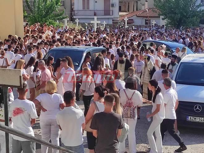 Ράγισαν καρδιές το απόγευμα της Δευτέρας, στον Ιερό Ναό Αγγέλων στο Α΄ Δημοτικό Κοιμητήριο Πατρών, όπου συγγενείς και φίλοι – όλοι ντυμένοι στα λευκά – είπαν το τελευταίο αντίο στην 14χρονη Χριστίνα, η οποία έχασε την ζωή της έπειτα από τροχαίο.