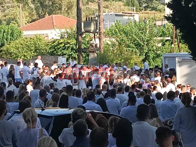 Όπως φαίνεται στις φωτογραφίες που δημοσίευσε το tempo24.gr, όσοι έφτασαν στο κοιμητήριο ήταν όλοι τους ντυμένοι στα λευκά, όπως ήταν η επιθυμία της οικογένειας της άτυχης κοπέλας, ενώ την κηδεία τέλεσε ο μητροπολίτης Πατρών Χρυσόστομος.