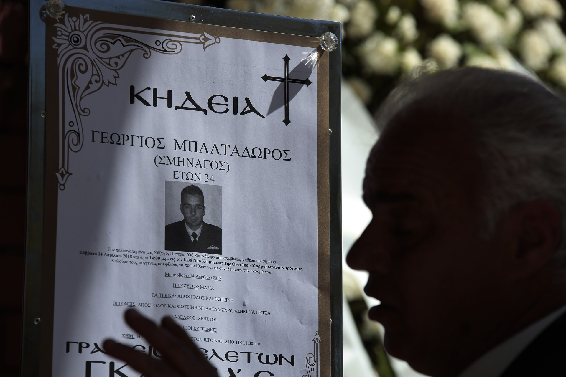 Σε κλίμα οδύνης είπαν το τελευταίο αντίο συγγενείς, φίλοι και συνάδελφοι, στον Σμηναγό Γιώργο Μπαλταδώρο, που έχασε τη ζωή του στη συντριβή του Mirage 2000-5 εννέα ναυτικά μίλια βορειοανατολικά της Σκύρου.
