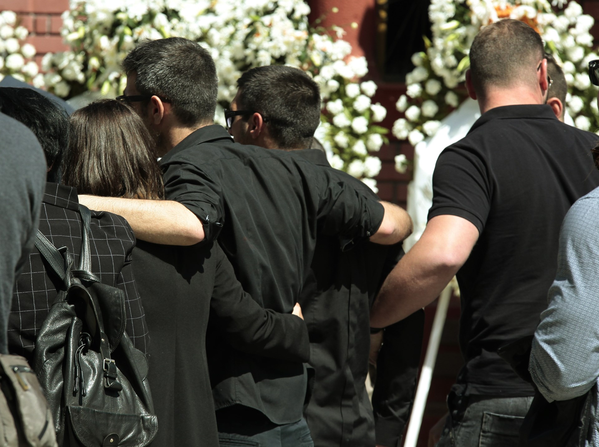 Τραγικές φιγούρες, η σύζυγός του, οι γονείς του και ο αδερφός του. Η γυναίκα του δεν άντεξε και κατέρρευσε μέσα στην εκκλησία. Στη συνέχεια μεταφέρθηκε με φορείο σε ασθενοφόρο για τις πρώτες βοήθειες.