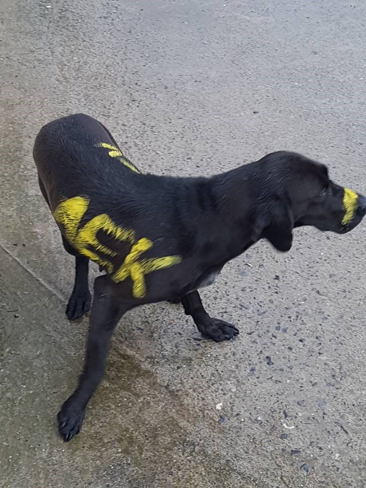 Θύελλα αντιδράσεων έχει προκαλέσει σε φιλοζωικές οργανώσεις, και όχι μόνο, η κακοποίηση ενός σκύλου, το οποίο άγνωστος το έβαψε με σπρέι σε όλο του το σώμα.Η μαύρη σκυλίτσα απεικονίζεται στις φωτογραφίες τρομαγμένη, και φαίνεται στο σώμα της, αλλά και στη μουσούδα της, το κίτρινο σπρέι, με το οποίο ο άγνωστος έβαψε το άτυχο ζώο.Η δημοσιοποίηση αυτών των φωτογραφιών προκάλεσαν σάλο αντιδράσεων στο διαδίκτυο, με αρκετούς από τους χρήστες των social media να θέλουν να προσφέρουν βοήθεια στη μαύρη σκυλίτσα, ενώ καταγγέλλουν την κίνηση του δράστη.