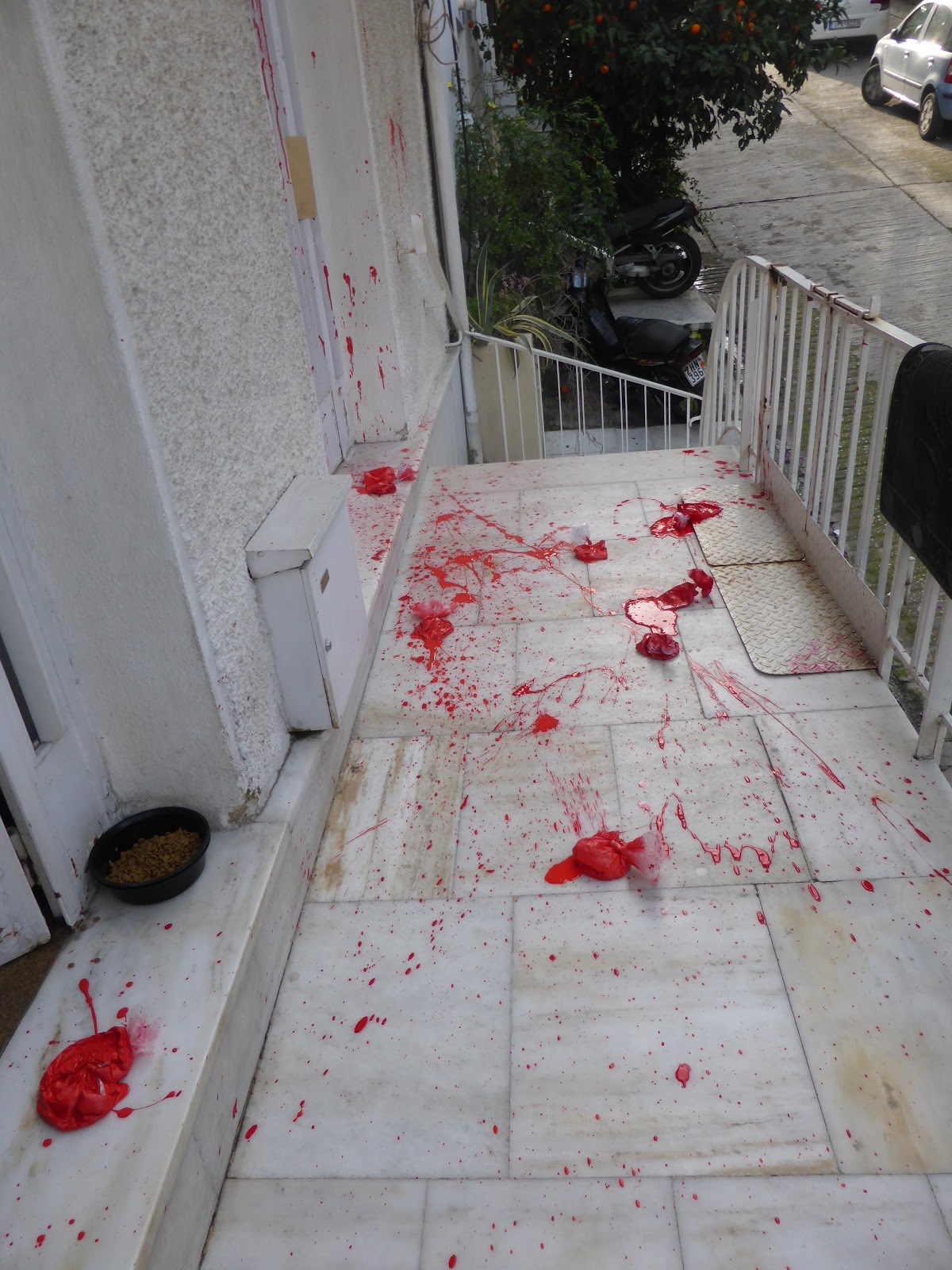 Σύμφωνα με την αστυνομία, οι δράστες, λίγο μετά τις 3:30 το μεσημέρι του Σαββάτου, πέταξαν κόκκινες μπογιές στην είσοδο του σπιτιού του Μίκη Θεοδωράκη και έγραψαν στον τοίχο απειλητικά συνθήματα. Σημειώνεται, ότι έως αυτή την ώρα δεν έχει γίνει κάποια προσαγωγή.