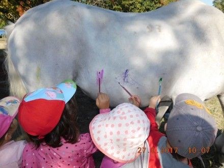 Συγκεκριμένα, όπως φαίνεται σε φωτογραφίες που κάνουν τον γύρο του διαδικτύου, τα παιδιά ενός παιδικού σταθμού, ζωγράφισαν πάνω σε άλογα υπό την επίβλεψη των παιδαγωγών τους.