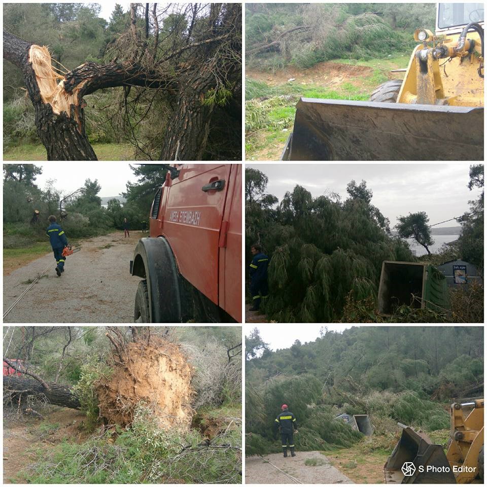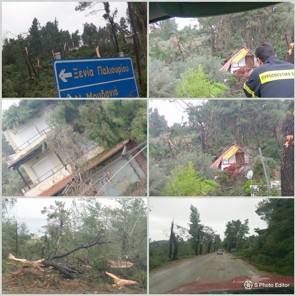 Σύμφωνα με την Πυροσβεστική, οι ισχυροί άνεμοι – κάποιοι μιλούν και για ανεμοστρόβιλο – ξερίζωσαν τουλάχιστον 30 δέντρα από το βουνό, τα οποία μαζί με φερτά υλικά από τη βροχή παρασύρθηκαν στο οδόστρωμα στην Κασσάνδρα Χαλκιδικής. Ο επαρχιακός δρόμος Πευκοχωρίου – Κανίστρου έκλεισε για μία ώρα περίπου καθώς κλιμάκια της Πυροσβεστικής και της Πολιτικής Προστασίας με μηχανήματα, επιχειρούσαν για την απομάκρυνση κορμών και φερτών υλικών και την αποκατάσταση της κυκλοφορίας.
