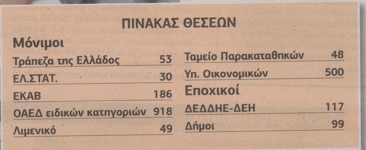 Προκηρύξεις που προβλέπουν την πρόσληψη 2.000 μόνιμων και εποχικών υπαλλήλων έχουν εκδοθεί από δήμους, υπουργεία, ΔΕΗ, Λιμενικό, ΕΚΑΒ, ΕΛ. ΣΤΑΤ. Και Τράπεζα της Ελλάδος.