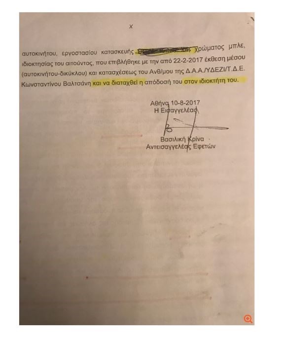 ΑΚΟΛΟΥΘΕΙ Η ΠΡΟΤΑΣΗ ΓΙΑ ΑΠΟΔΟΣΗ ΤΟΥ ΑΥΤΟΚΙΝΗΤΟΥ ΜΟΥ ΠΟΥ ΠΑΡΑΝΟΜΑ ΚΑΤΑΣΧΕΘΗΚΕ.