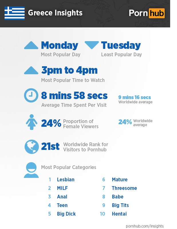 Τις προτιμήσεις των Ελλήνων επισκεπτών της ιστοσελίδας Pornhud, ανακοίνωσαν οι υπεύθυνοι του ιστότοπου.