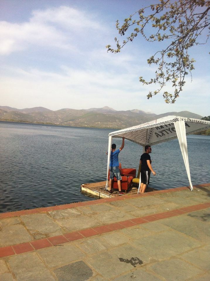 Μια παρέα παιδιών δημιούργησε την παρακάτω κατασκευή, προκειμένου να απολαμβάνουν οι περαστικοί το καφεδάκι τους μέσα στη λίμνη, εντελώς δωρεάν και με φόντο την μαγευτική θέα.
